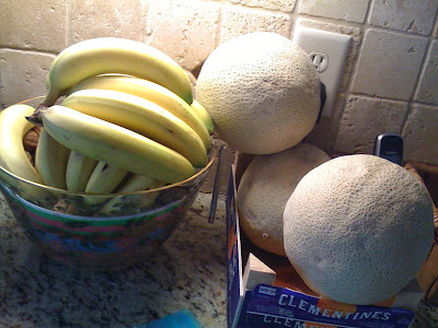 I did not get around to prepping any fruit for smoothies. I recently bought four cantaloupes that were on sale at Kroger this week for 1.39. I couldn't pass that up. We use cantaloupes a lot in our green smoothies. So I'll be freezing what we can't eat fresh. They are still not ripened much so I've actually got time. The bananas too are a much used fruit for smoothies and for banana bread. I love me some banana bread. But I think I will wait till the family has had their fill of fresh bananas before freezing them.