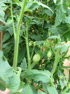 Roma tomatoes are showing themselves all over the plant now.