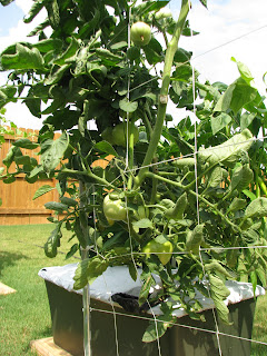 I forget what this Earthbox tomato is called, but it's making my mouth water as I wait for it to ripen it's fruits. Or should I make us some good ol' Fried Green Tomatoes?!