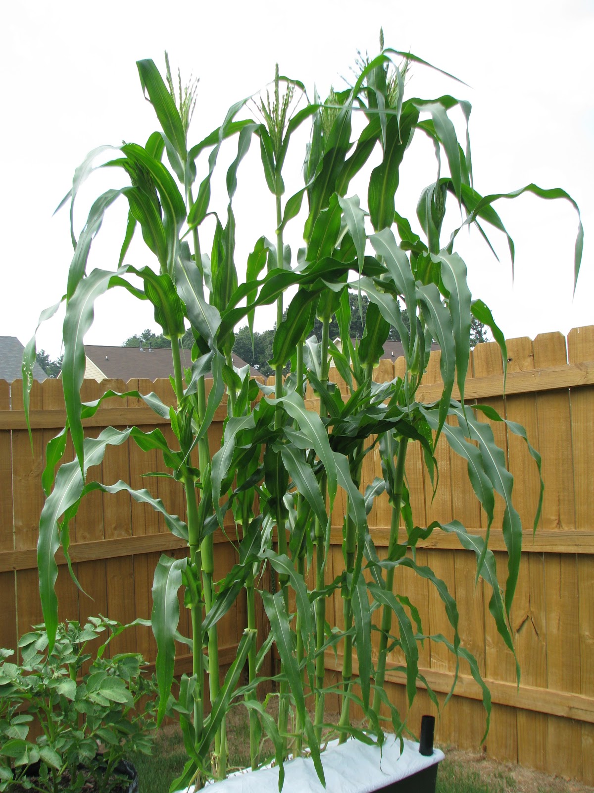 The corn is now taller than the fence. It's flowering & has sprouted the beginning of their ears of corn in between the larger leaves. It's pretty cool to show the kids where the ears of corn will be. I wondered why do you call it an “ear” of corn? So of course i had to Google It....“Ear” comes from the ancient word “ahs,” which meant “husk of corn.” In English, sometimes the ear also is referred to as a “cob” or a “pole.”