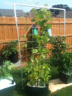 The poor Pole Beans. I can't be sure if they'll recover from root rot. Perhaps I caught it in time before they all suffocated. Poor drainage from these poly bags. Won't use these next season for beans, may try it out for herbs.