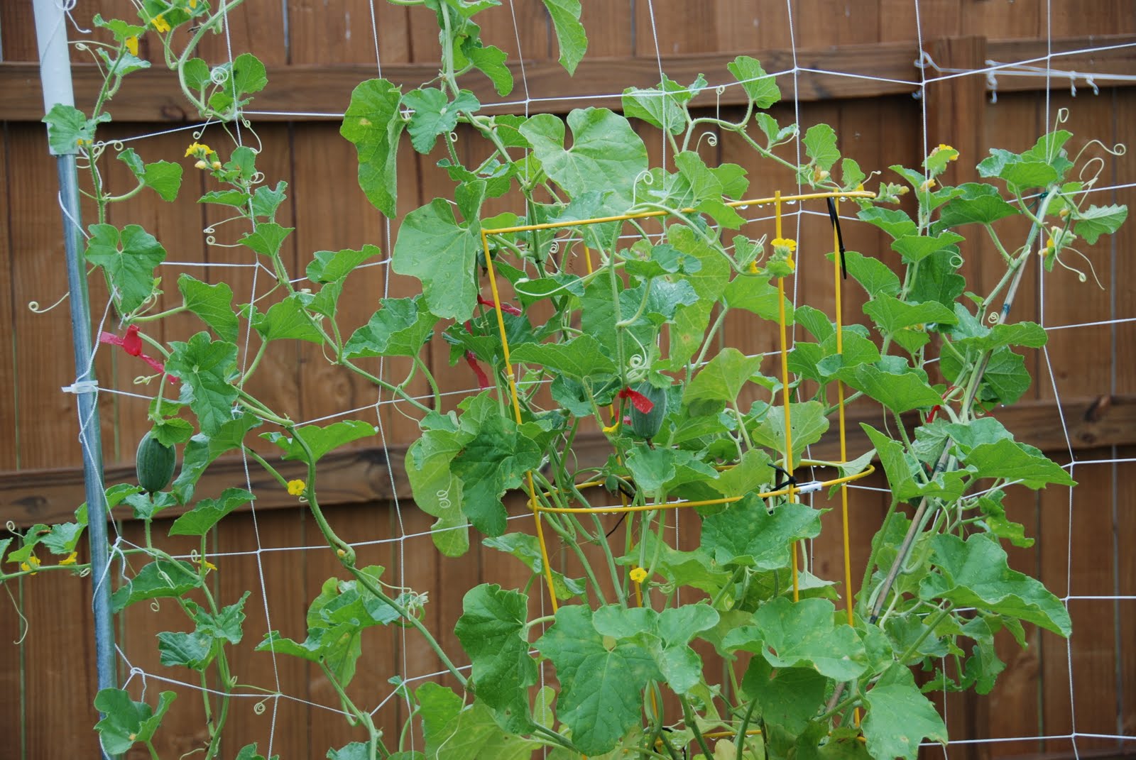 | Just one of the four maturing melons. |