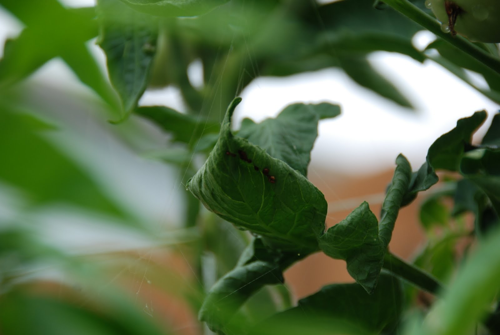 | Are those squash bug eggs in the tomato plant???? Urgh! |